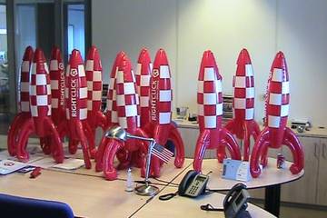 Het grote E-tail onderzoek 2009 WebArchitects laat zich graag inspireren door vooruitstrevende denkers als Hergé uit het beroemde stripverhaal van Kuifje “Raket naar de maan”. Hergé was een perfectionist en liet zich bij het ontwerpen van de raket adviseren door wetenschappers en deskundigen. Over alles was nagedacht; de plek van de motoren, het interieur en ook maanpakken waren aanwezig. Hergé was zijn tijd ver vooruit. Ook WebArchitects is altijd op zoek naar nieuwe inzichten. In dat kader is WebArchitects initiatiefnemer van ‘Het grote Etail onderzoek 2009’, waarvoor WebArchitects middels het versturen van rood-wit geblokte, opgeblazen RightClick raketten vele retailers heeft uitgenodigd om deel te nemen.