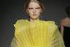 De jas, die in zijn nieuwe collectie is uitgevoerd in wit zijde dat versterkt is met glasvezel, is op dezelfde strakke manier gevouwen als een priesterjas. Een aantal modellen droeg enorme, handgeborduurde baretten die deden denken aan religieuze halo’s.