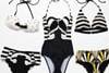 De beachwearcollectie van And Beyond heet ‘Deauville’ en zal vanaf dit voorjaar verkrijgbaar zijn in zo’n 45 winkels van We. Zoals de naam van de collectie al doet vermoeden, was de Franse badplaats Deauville een inspiratiebron. Volgens het modeduo van And Beyond – bestaande uit Jolanda van den Broek en Brigitte Hendrix – vormden vooral de roaring twenties, toen de rijke Parijzenaren naar Deauville togen, voor creatieve ingevingen. De badmodelijn met bikini’s, badpakken, pareo’s, een strandlaken en tas heeft verschillende prints en patronen die gebaseerd zijn op de wapperende doeken van de zwart-wit gestreepte ‘umbrella tents’ op het strand. And Beyond wilde daarmee een diepte-effect oproepen. “Net als de wilde Charleston dans en de eigenzinnige Flappergirls stond zonnebaden in de jaren twintig symbool voor vrijheid. De collectie betekent dan ook fun, freedom en fashion,” aldus de ontwerpers in een persbericht.
