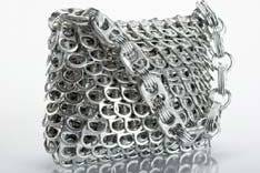 Tassen van Escama Studio zijn blikvangers. Letterlijk en figuurlijk. De modieuze tassen worden gemaakt van hergebruikte aluminium treklipjes van blikjes. In de grotere modellen zijn 700 tot meer dan 1.600 treklipjes verwerkt. Escama Studio komt dit najaar met vier nieuwe modellen op de markt en heeft het aanbod uitgebreid met een ceintuur.