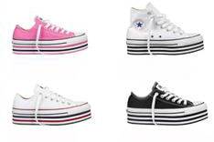 Chuck Taylor heeft slim meegedacht voor de iets minder creatieven onder ons: de All Star Platform. Naar eigen zeggen combineert het merk het beste van twee werelden: extra centimeters en het vertrouwde gevoel van de All Star-sneaker. Van boven is het gelijk aan de klassieke gymp, maar er zit een platform onder met strepen in bijpassende kleuren. De All Star Platform is verkrijgbaar in de hoge en lage variant voor 89,95 euro.