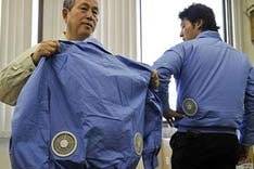 De simpele overhemden hebben een ingebouwde ventilator. Volgens Kuchofuku - wat air conditioned kleding betekent in het Japans - is het overhemd veel duurzamer dan een hele ruimte koeler maken.