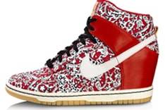 Het meest modische item van de samenwerkingscollectie is de Dunk Sky High, een sneaker met verborgen sleehak, dé schoen van dit voorjaar. Nadat Isabel Marant een ware hype creëerde met haar elegante gymp met verborgen hak van een paar honderd euro, zijn nu allerlei varianten verkrijgbaar van merken als Supertrash en Ash, en fast fashion retailers als Topshop en H&M.