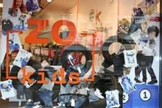Kinderkledingwinkel Zo Kids heeft zijn etalage omgetoverd tot kinderspeeltuin met autobanden waarop spijkerbroeken hangen. Ook zijn er gympies in de ruimte achtergelaten. Op de ruiten zijn uitvergrote campagnebeelden van Name It geplakt.
